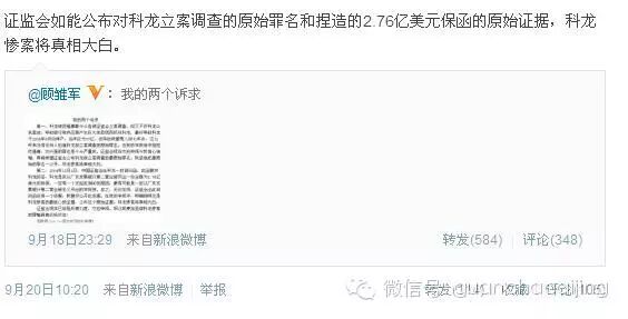 10月18日,顾雏军的行为艺术终于被推向了高潮:以寄快递的方式,直接向时任证监会纪委书记的黎晓宏提交举报信,并在信中重复了9月在微博上提出的两大诉求。